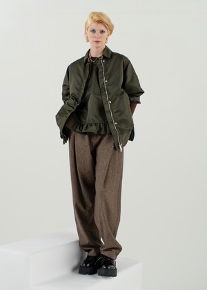 MA-1のディテールを着想源に、ミリタリーの要素を軽やかに再構築したフレアトップ。