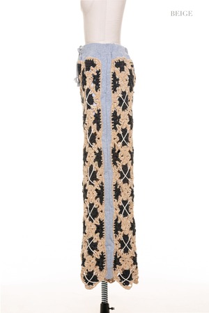 スウェット地のリラックスしたボディに、手編みのニットモチーフを組み合わせて完成しスウェットパンツ。