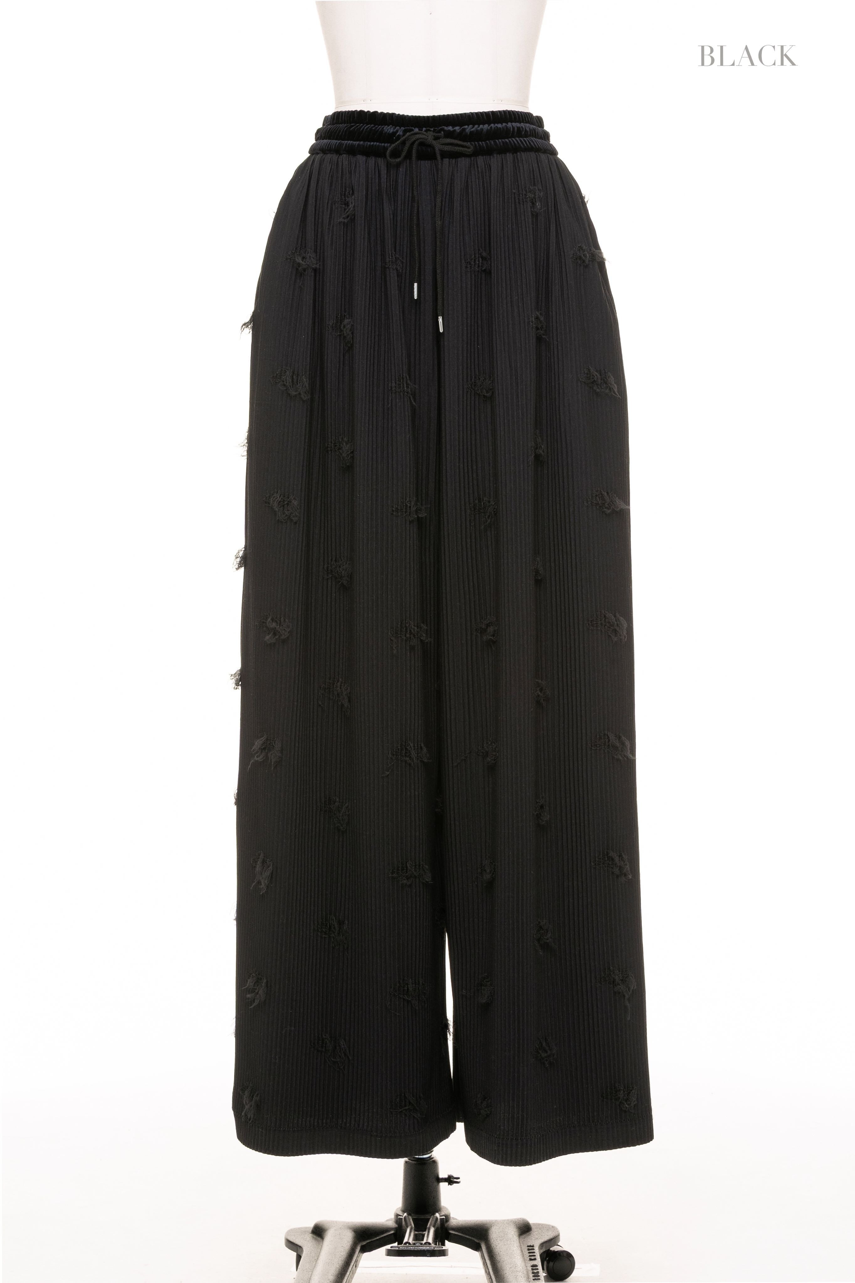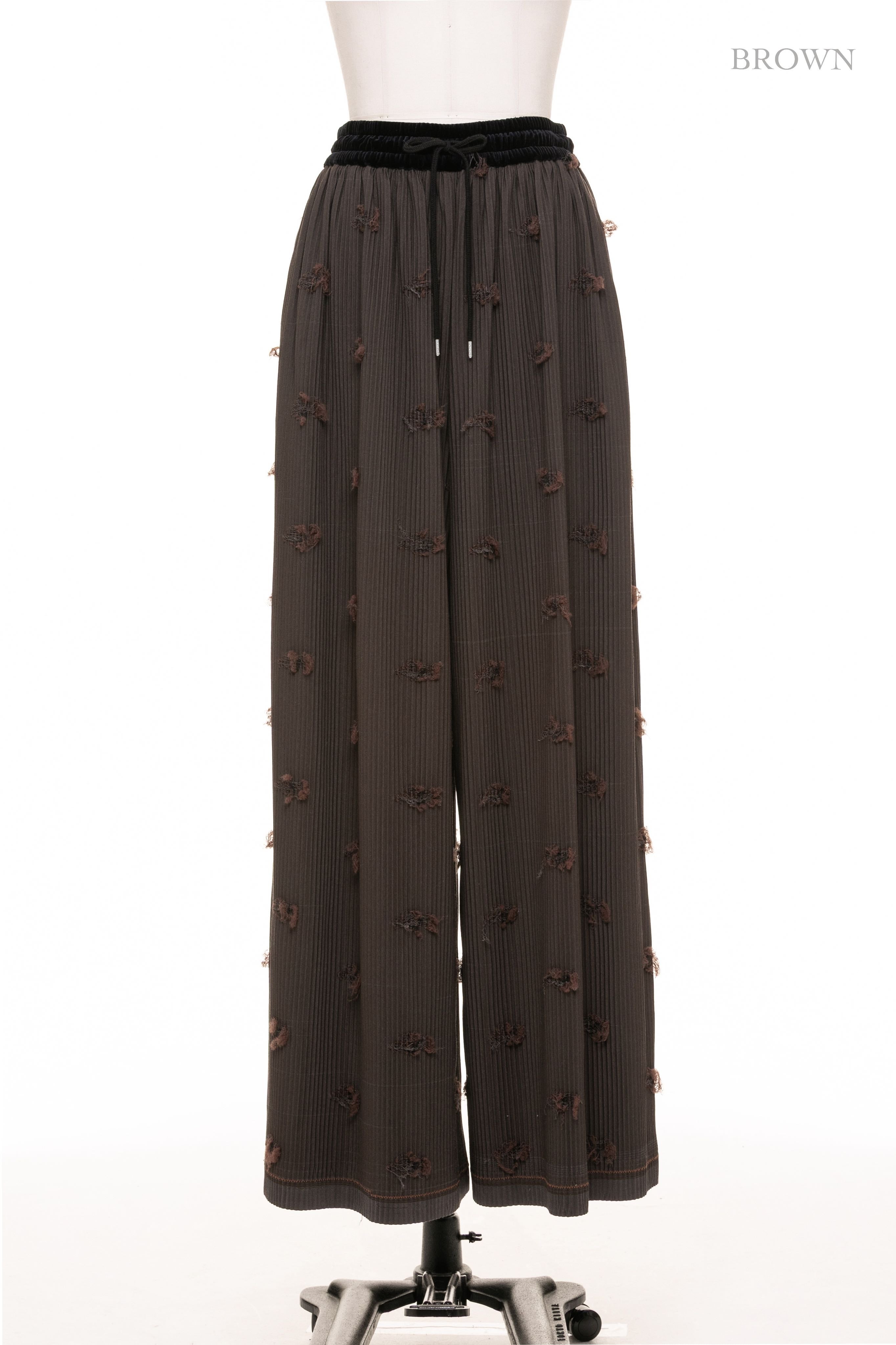 花柄ジャカードの“裏側”を使用した、表情豊かなプリーツパンツ。